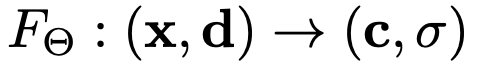 -> output = volume density and view-dependent emitted radiance at that spatial location.