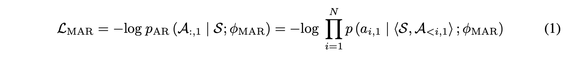 decoder theta mar : modeling the concatenated sequence <s, a>, is trained to predict A autoregressively.