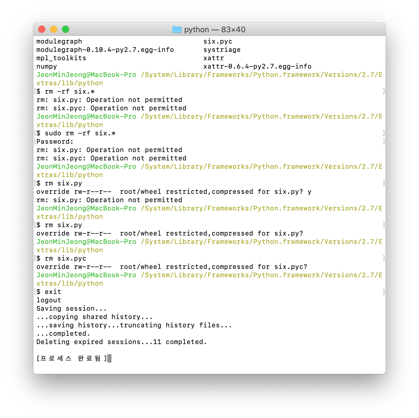 안 설치되어 있어서 못삭제한다고 한다. (pip3)