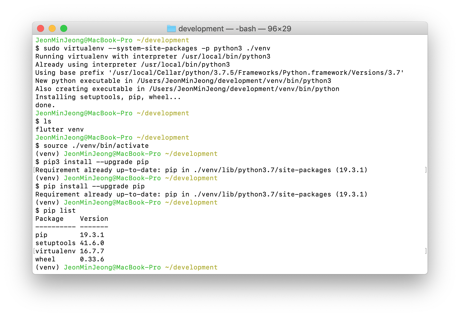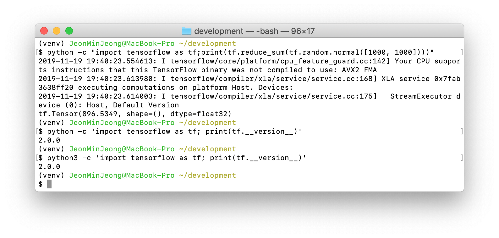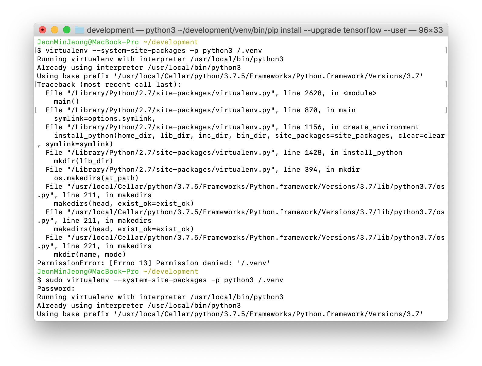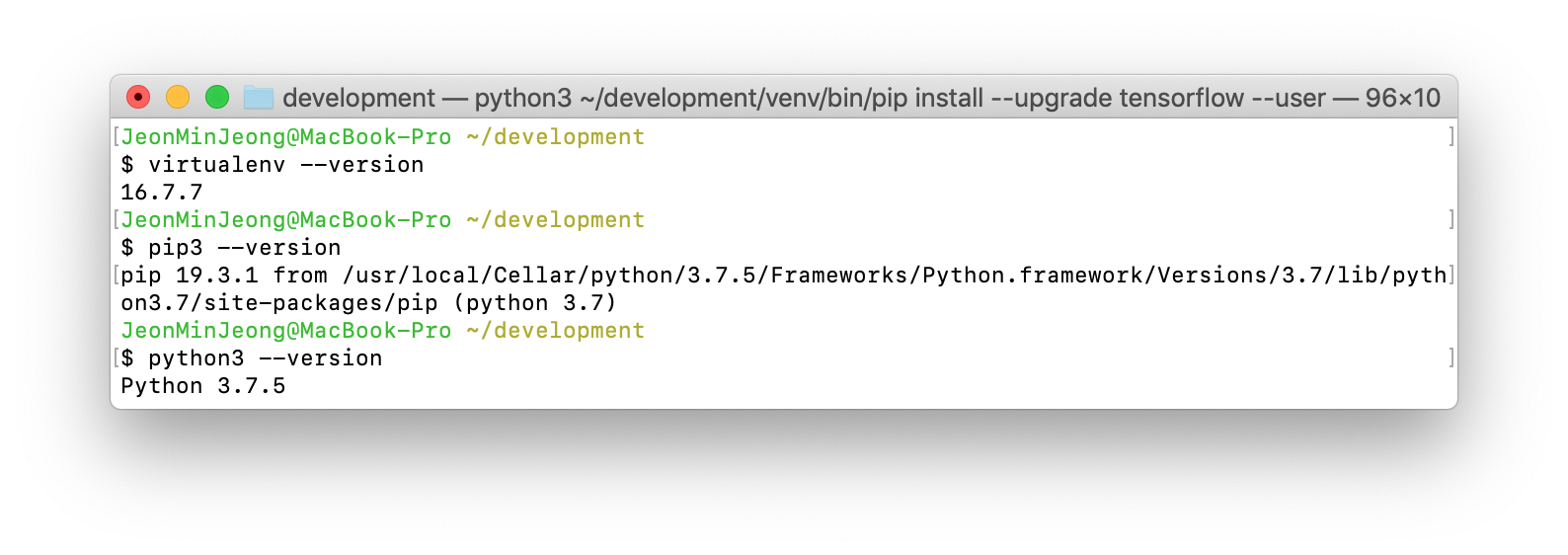 내 맥에다 virtualenv를 사용하여 tensorflow를 설치할 것이다.