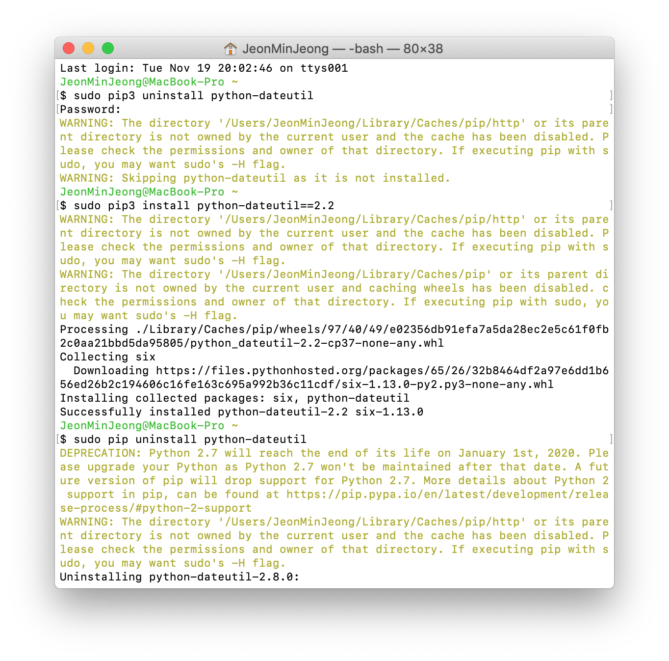 sudo pip uninstall python-datetutil