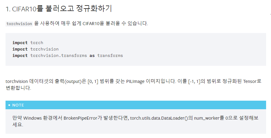 출처 : https://tutorials.pytorch.kr/beginner/blitz/cifar10_tutorial.html#cifar10