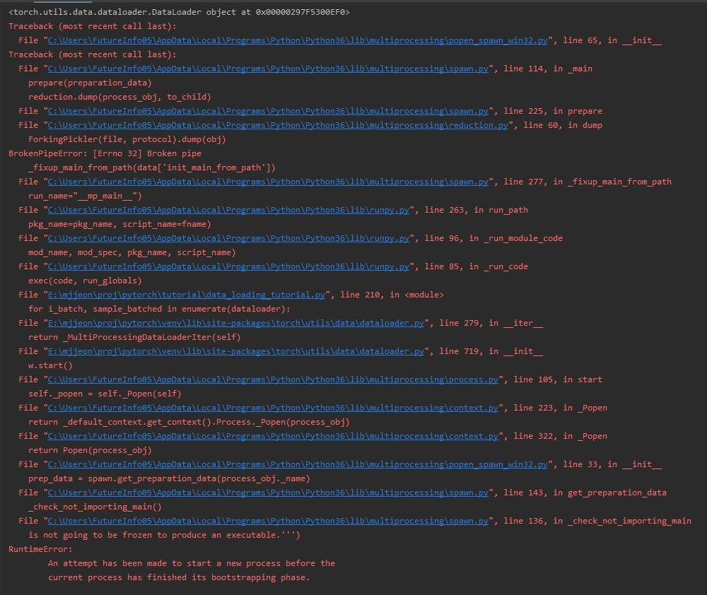 DataLoader 로 가져오는 부분에서 위와 같은 문제 발생